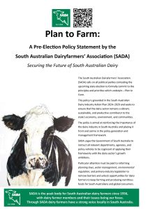 The South Australian Dairyfarmers’ Association (SADA) has launched its pre-election policy platform, Plan to Farm, calling on all political parties to commit to the long-term growth and sustainability of South Australia’s dairy sector.